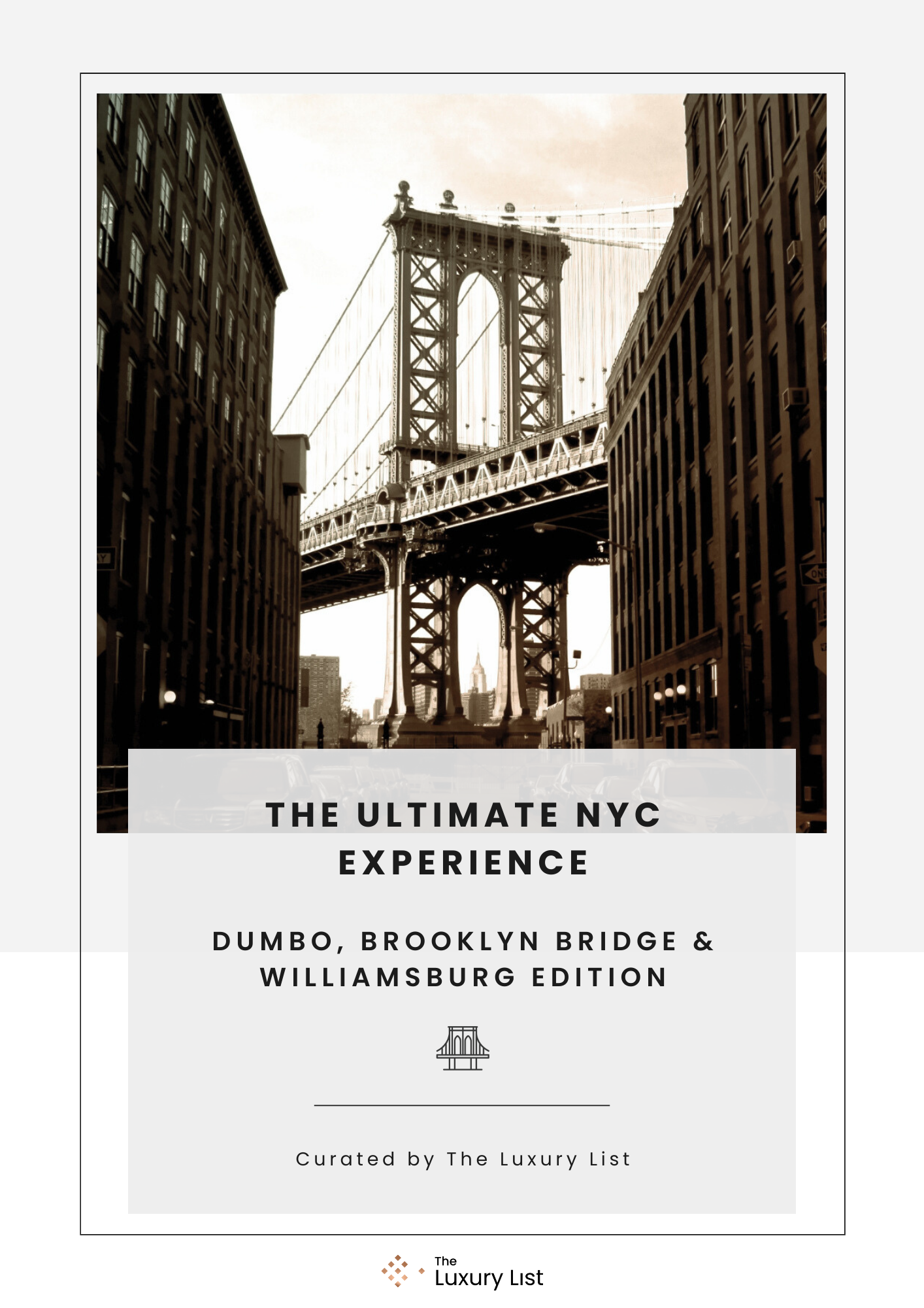 Discover Brooklyn with a curated self-guided tour by The Luxury List. Explore DUMBO, the Brooklyn Bridge & Williamsburg with photo spots, cafés, boutiques, murals, and a Google Maps full-day itinerary. Instant PDF download.