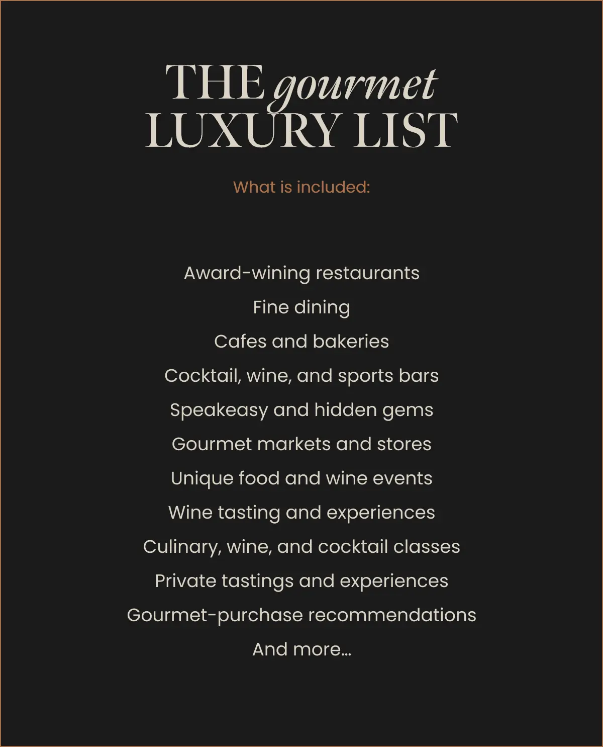 Sou muito ocupada e não tenho tempo de pesquisar os melhores lugares para ir quando viajo. A The Luxury List fez exatamente o que eu precisava: planejou e reservou restaurantes excelentes para um fim de semana em Nova York com meu marido. Foi a melhor experiência gastronômica em anos! Obrigada, The Luxury List!
